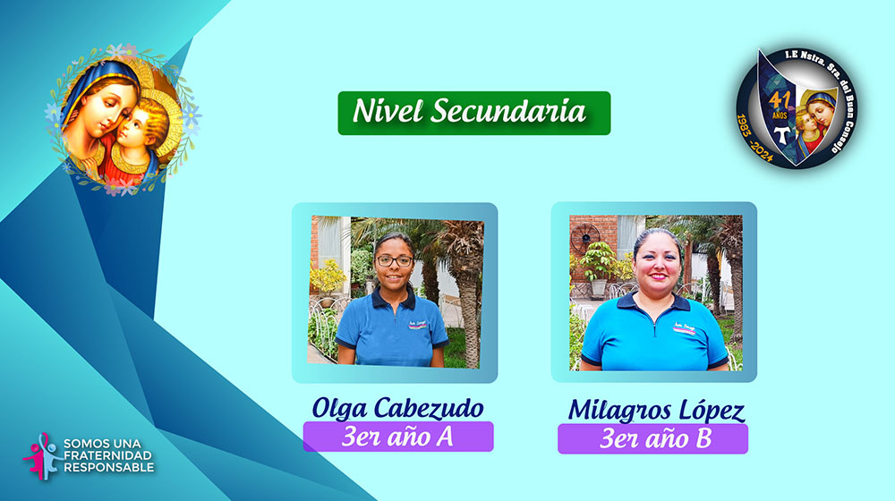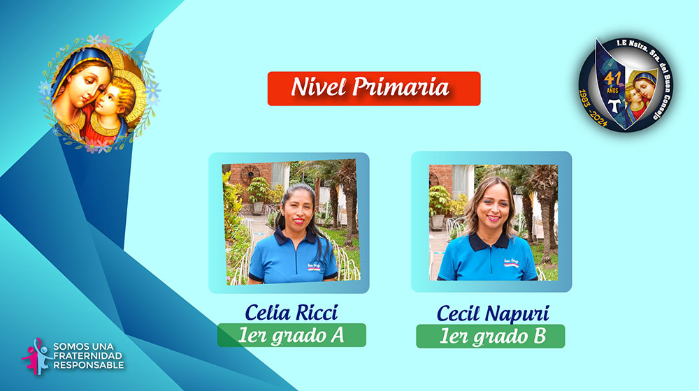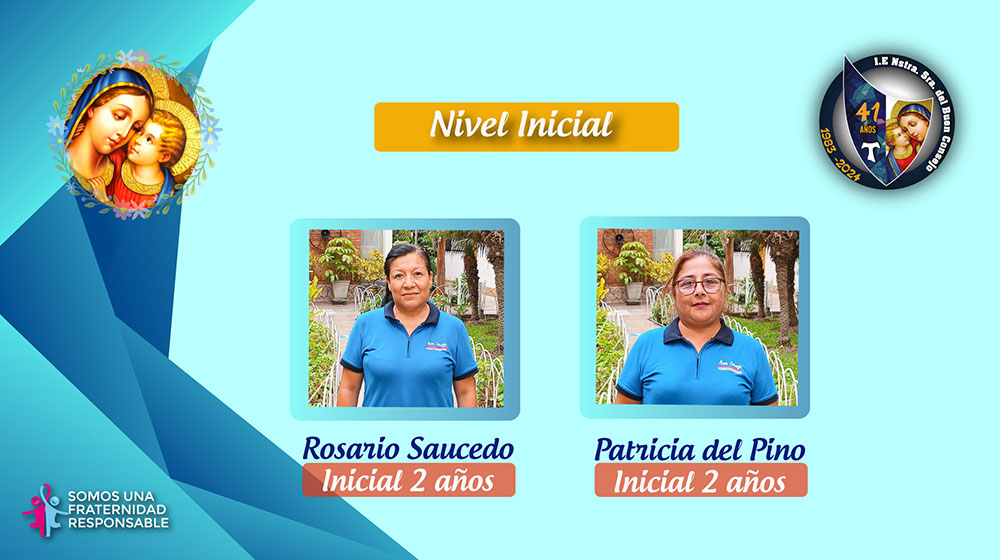PERSONAL DIRECTIVODirectora GeneralSor Juana Jorge GarcíaSub Directora AdministrativaSor Emilia Santos SantosEquipo Directivo Item de carrusel 01Directora GeneralSor Juana Jorge GarcíaItem de carrusel 02Sor Emilia Santos SantosSub Directora AdministrativaItem de carrusel 04Lic. Rosa María Torres TorresJefe de Norma y ConvivenciaCoordinadora de TutoríaItem de carrusel 03Juan Antonio Ruiz GutiérrezCoordinador de PastoralCoordinaciones Item de carrusel 03Mg. Lourdes Echavigorín VargasCoordinadora de 5to de primaria a 5to de secundariaItem de carrusel 04Mg. Mónica Dávila Paz Coordinadora de Inicial a 4to grado de PrimariaCoordinadora de ActividadesItem de carrusel 02Juan Antonio RuizCoordinador PastoralPersonal Educativo Inicial Primaria Secundaria Administrativo Asesorías