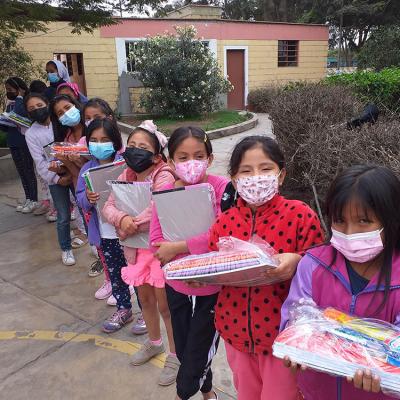 En esta ocasión, recibimos una donación de útiles escolares proveniente de la parroquia de Guriezo (España) destinada a las niñas residentes del Hogar de la Misericordia de Puente Piedra. Estos materiales fueron seleccionados y preparados por los estudiantes de nuestra promoción 2022, y el sábado, tres de ellos, en representación de todo el grupo, los entregaron personalmente a las niñas.
